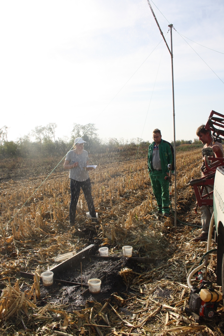 The rainfall simulator experiments started with a Pannon R-02 field rainfall simulator developed at the Soil Science Department of the Georgikon University, Keszthely (recent name: Pannon University, Georgikon Faculty). The EU Life SOWAP project of the Geographical Institute’s Physical Geography Department provided new opportunities for rainfall simulator research. Within the framework of this project, a field rainfall simulator developed by the researchers of the KU Leuven was purchased.