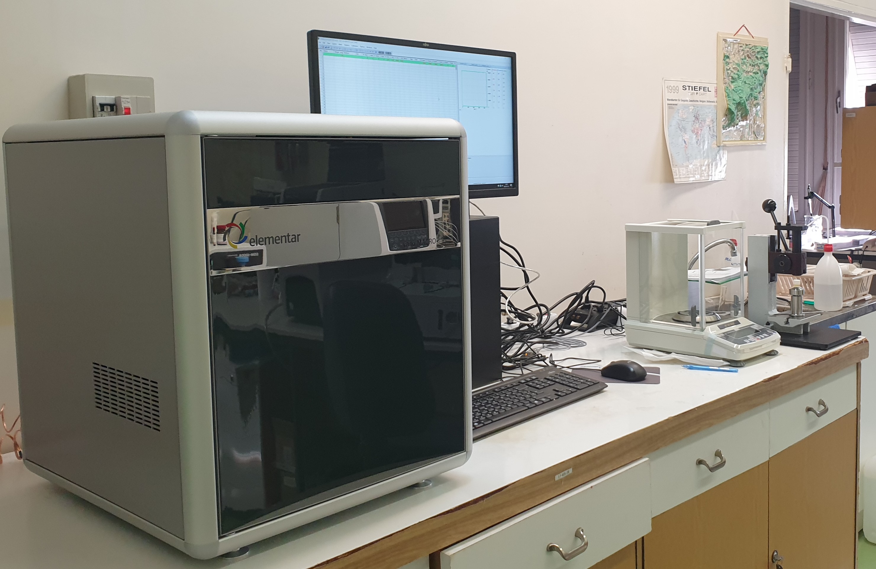 The C, H, N, and S content of solid phase materials is determined using an elemental analyser using the Dumas principle and TCD detector. Determination of the amount of organic carbon (TOC or SOC) is performed in two ways: 1./ determination of the C content after removal of carbonates, or 2./ calculated from the difference between total carbon (TC) and inorganic carbon (IC) (TOC = TC - IC).