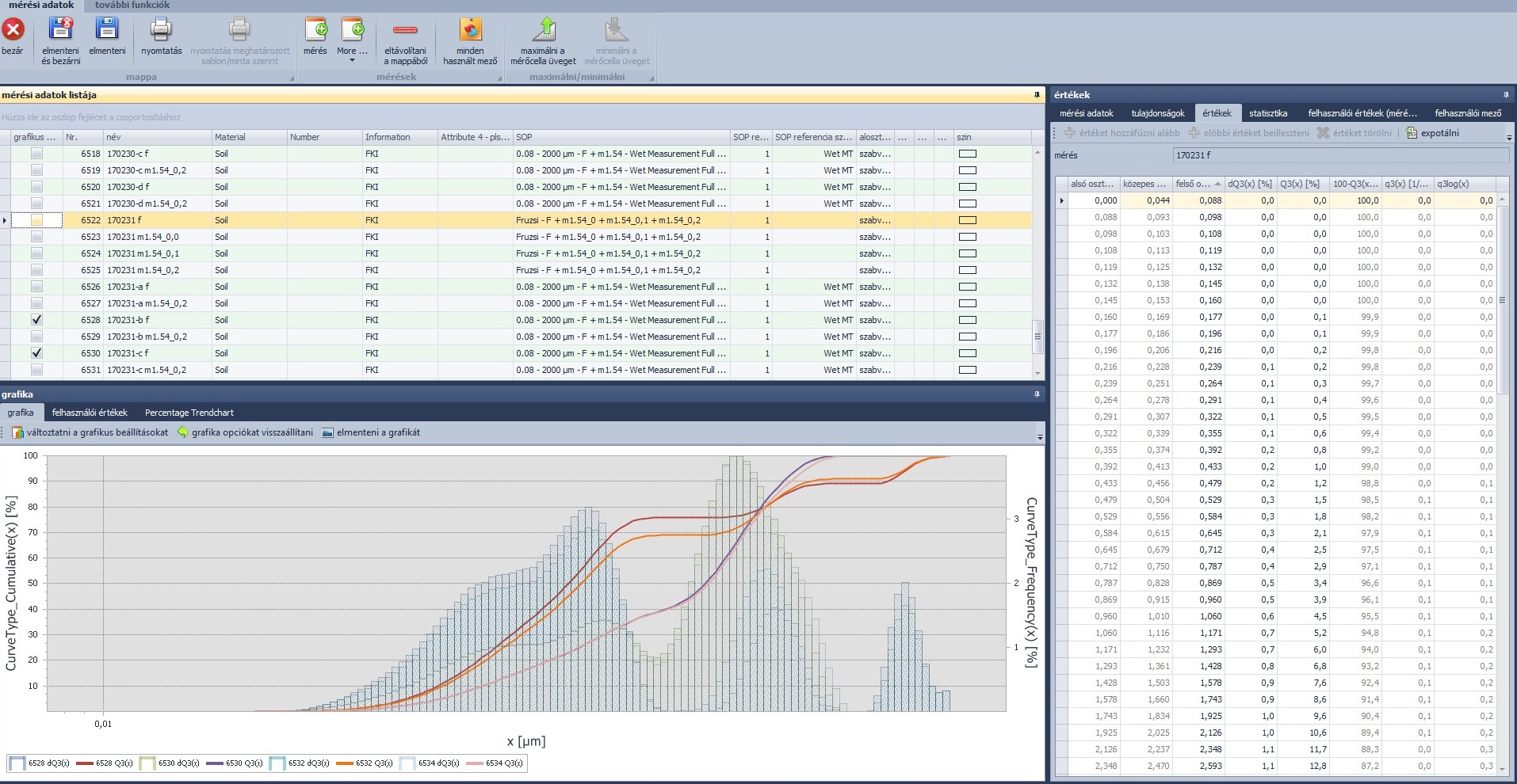 The most frequent samples for particle sizing are soils and unconsolidated sediment samples, but metal powders, pigments and pharmaceutical samples also were measured. Four different kinds of laser diffraction particle sizers (with various optical systems) can be found for this purpose in the SSI. Both of air and liquid dispersion are also available. Applied laser sources: red gas laser (940 nm), green gas laser (531 nm) and blue diode laser (405 nm).