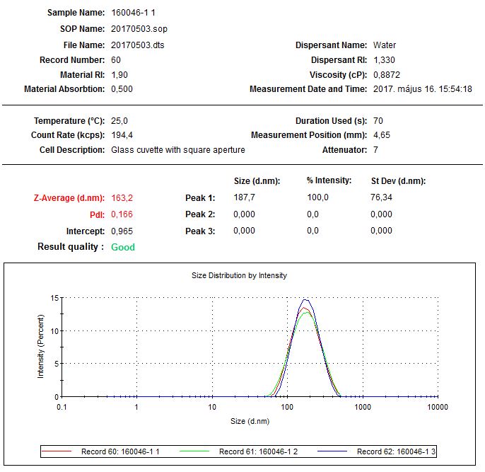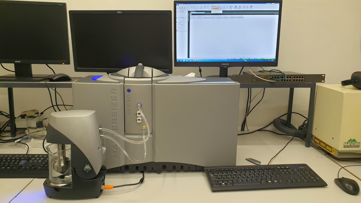 A Photon Correlation Spectroscope (DLS / SLS /ELS spectroscopy) is available for the analysis of the nano size range particles. This device is equipped with an autotitrator. Following parameters can be measured: hydrodynamic molecular size (DLS); absolute and estimated molecular weight: between <1000Da - 2x107 Da (by the Deby plot) and zeta potential. Molecular mass measurements can be controlled by HPSEC measurements as well.